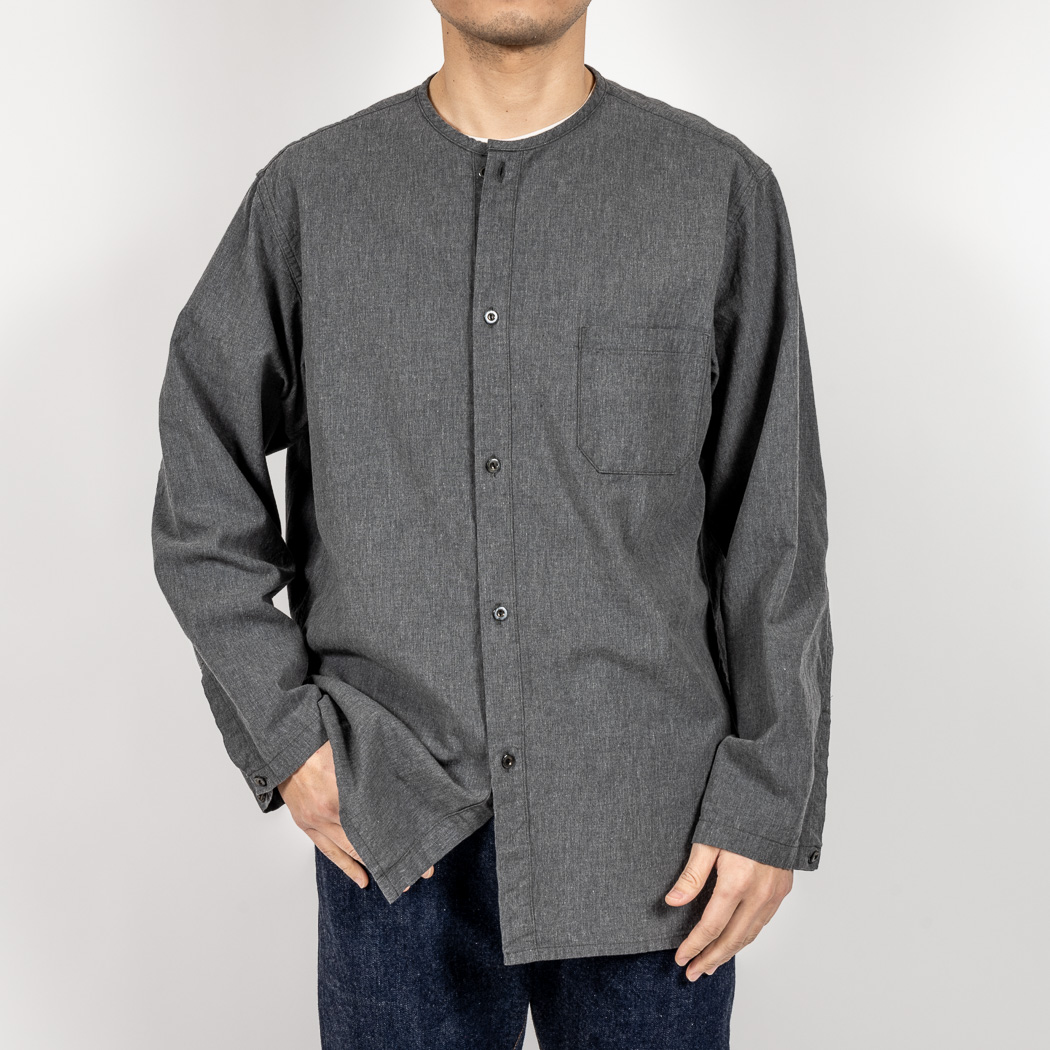 素材、ブラックシャンブレー、ネイビーチェックは5.5 オンス程、通年着られるシャツの厚み。ネイビーはインディゴのように見えますが、反応染めなので色落ちの心配はほとんど無し。