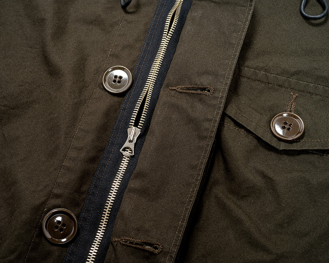 フロントはジッパー+ボタン止め。