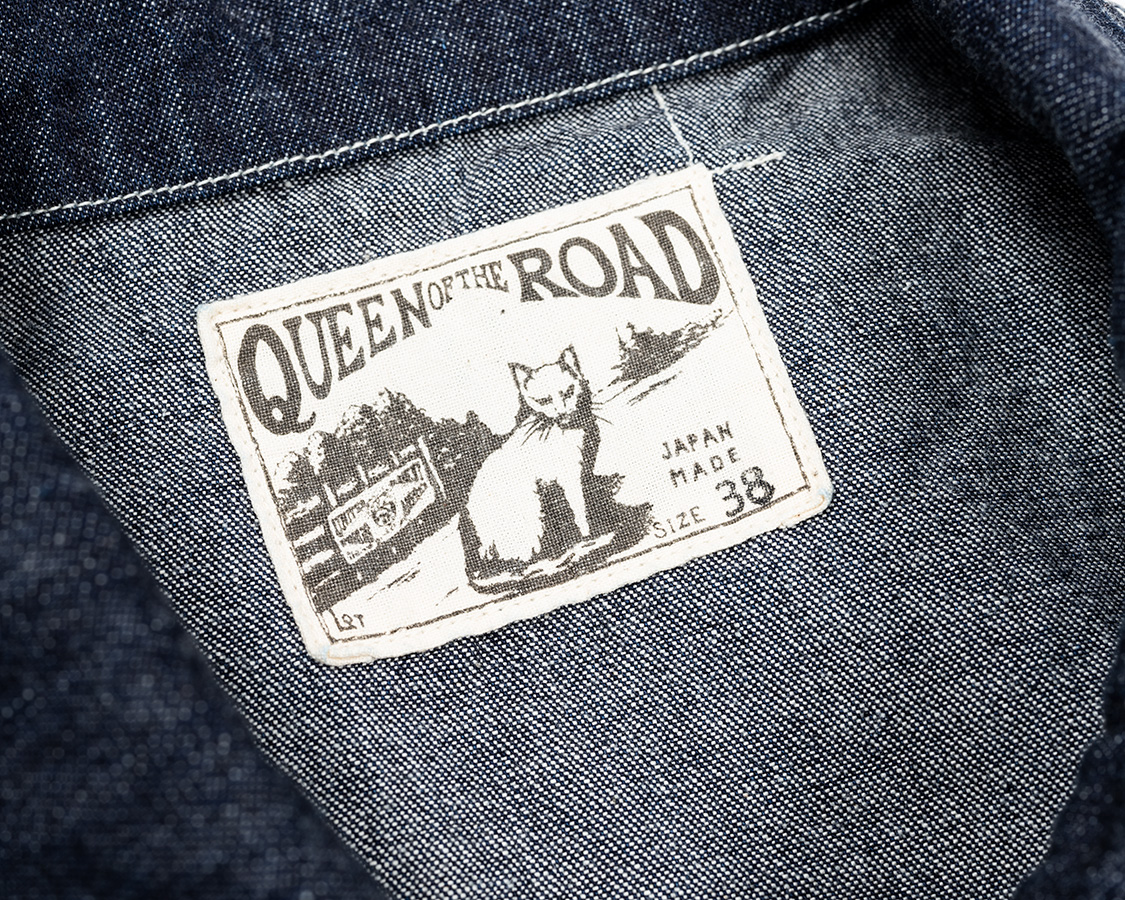 台襟の無い一枚物の襟。Queen of the road Jacketが「すっきりして見える」とか「バランスが良い」「癖が無い」と言われる理由の一つ。