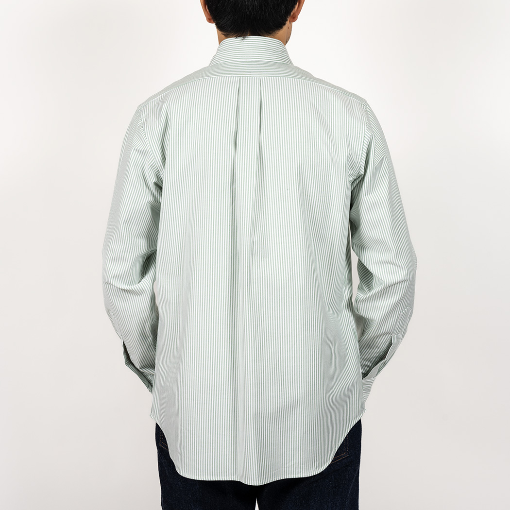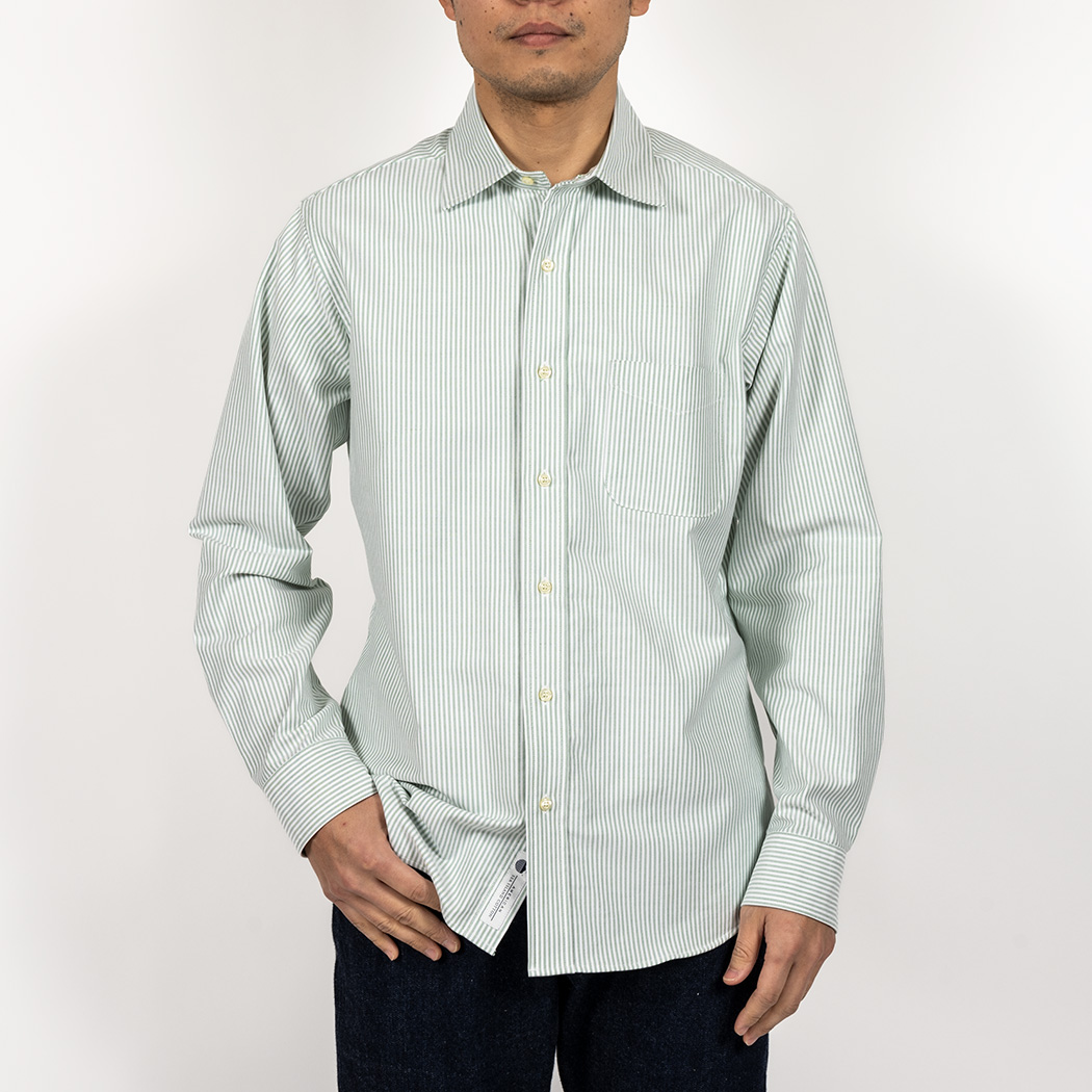 Modified Wide Spread Shirt, American Sea Island Cotton OX, Green Stripe |