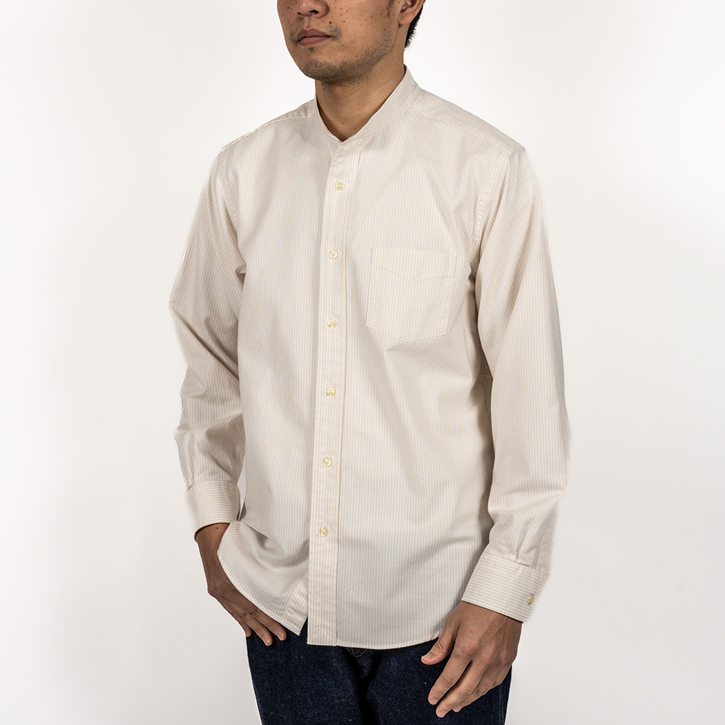 Band Collar Shirt, Ecru Stripe Supima OX |