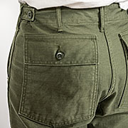 具体的には、解体したデッドストック、MIL-T-838Dからトレース。太い裾、広いワタリ、深めのまた上。いわゆる「軍パン」のシルエット。