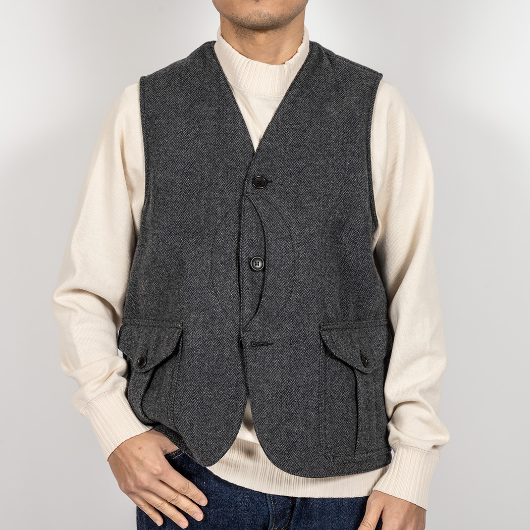 表地:480g/m 9.3オンス・ウール100%(内5%カシミア) ヘリンボンツイード |