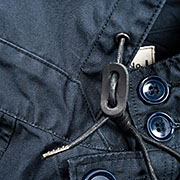 素材は平織りのベンタイル、厚手タイプ。軽い撥水性があり、また着こんでいくと生地が重なっている部分は白化して陰影が出ます。高密度生地には珍しい「育つ」素材。