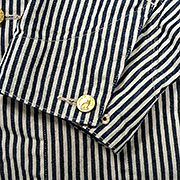 素材、いずれも10 オンス程。今回は防縮の入った生地ですが、現代のガッチガチな防縮では無いので製品でOW、縮切った状態にしています。初めて作ったBlack Duck、硫化染めでデコボコ部分に陰影が出て立体的な良い雰囲気。 |