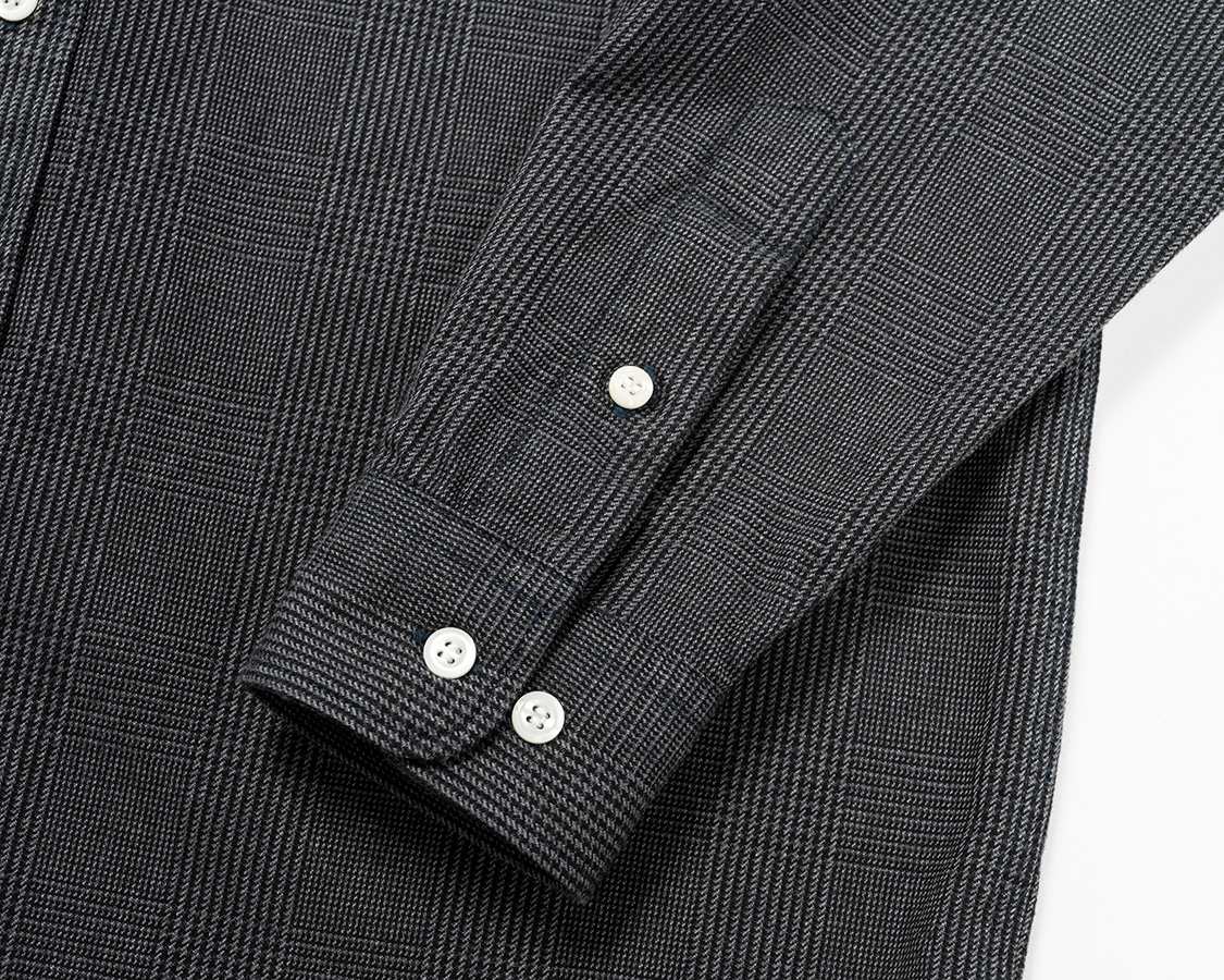 カフスは2枚物。芯止めステッチ入り。