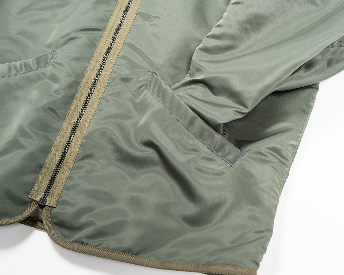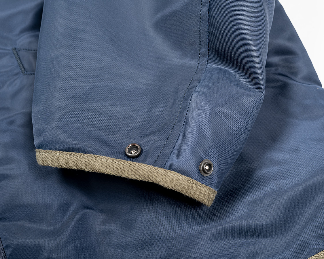 袖口もリブを無くし、調整にスナップ。L-2Bの肩・ポケットフラップ・三角タブについていたものを転用。