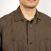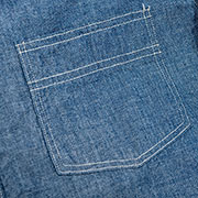 襟はチンスト+ 小さめの襟。ポケットはあえて左右。クラシックなシャツ= 1 ポケのイメージですが、実用性+ワークシャツらしさで2ポケットに。ボタンはメタル。適度に厚みがあり、角も立っていないので生地を切る事もなく安心して使えます。