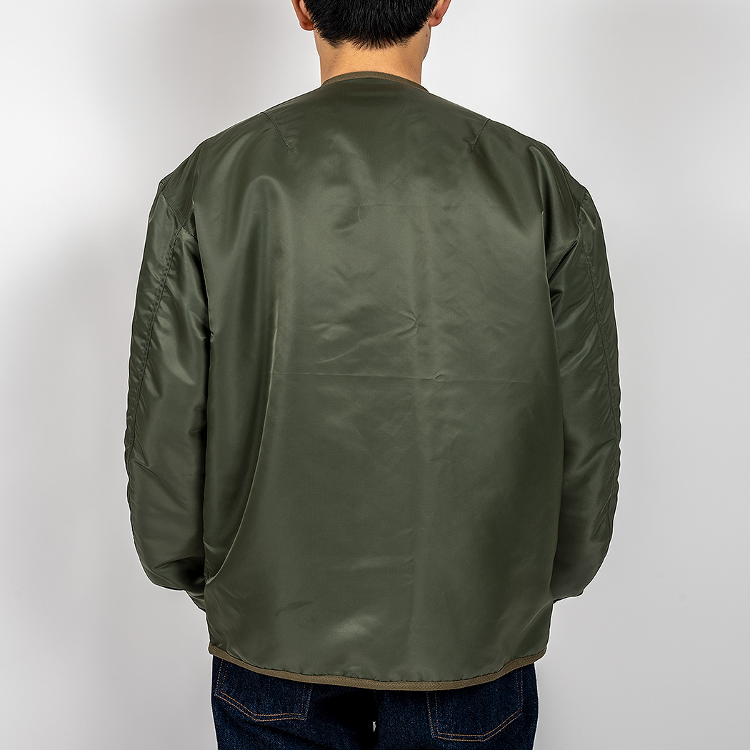 裏地、ビンテージのL-2Bに使われているコットン/ウールではなくあえてコットン/レーヨンツイル。ウールが入るとどうしても、扱いが少し難しくなるので。