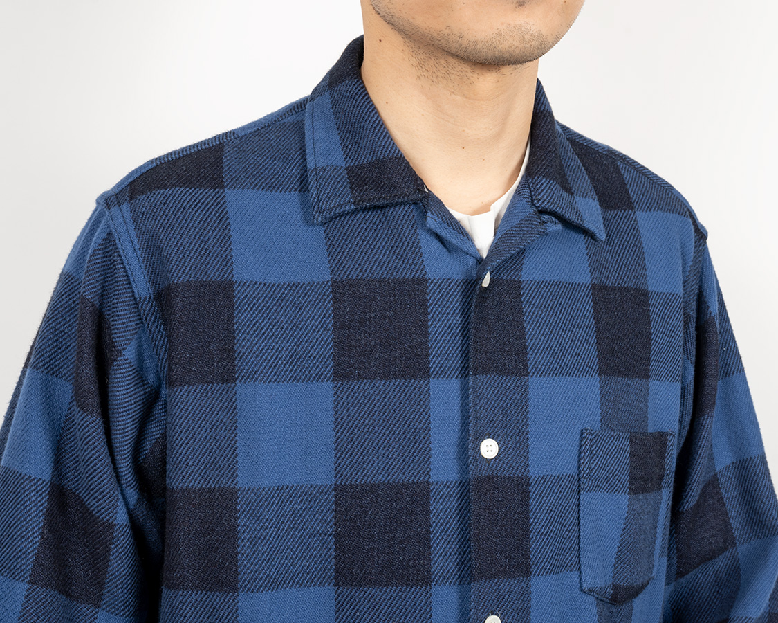 Flannel Open Collar Shirt, Navy Indigo Buffalo Check |