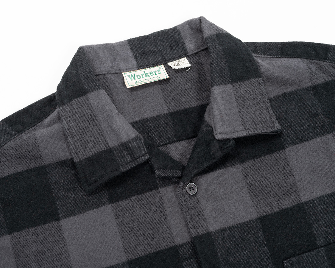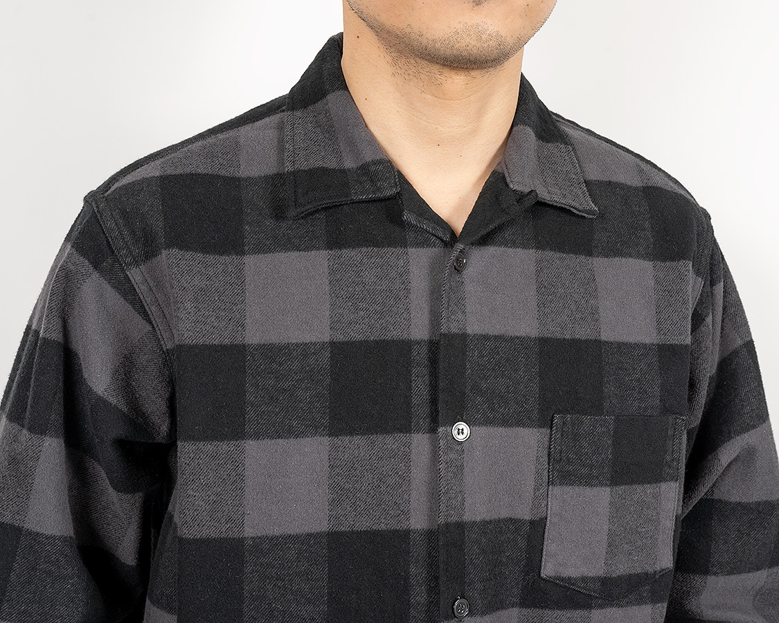 Flannel Open Collar Shirt, Grey Buffalo Check |