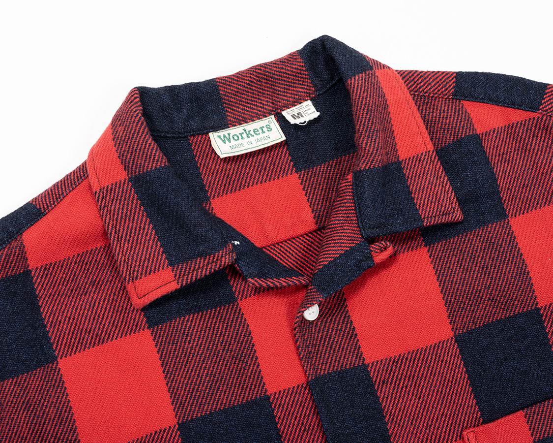 | Flannel Open Collar Shirt, Red Indigo Buffalo Check |
