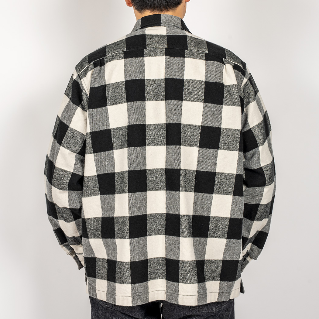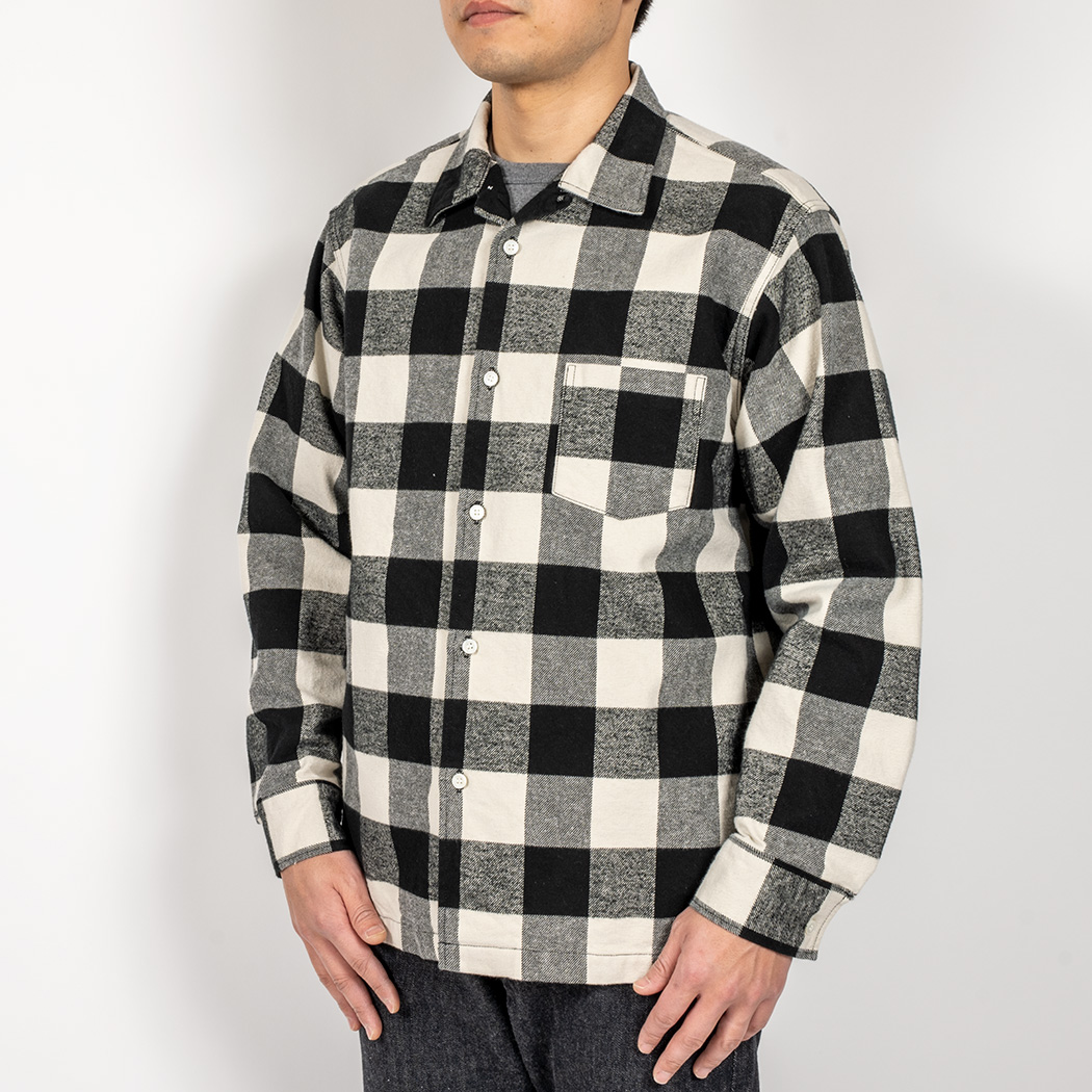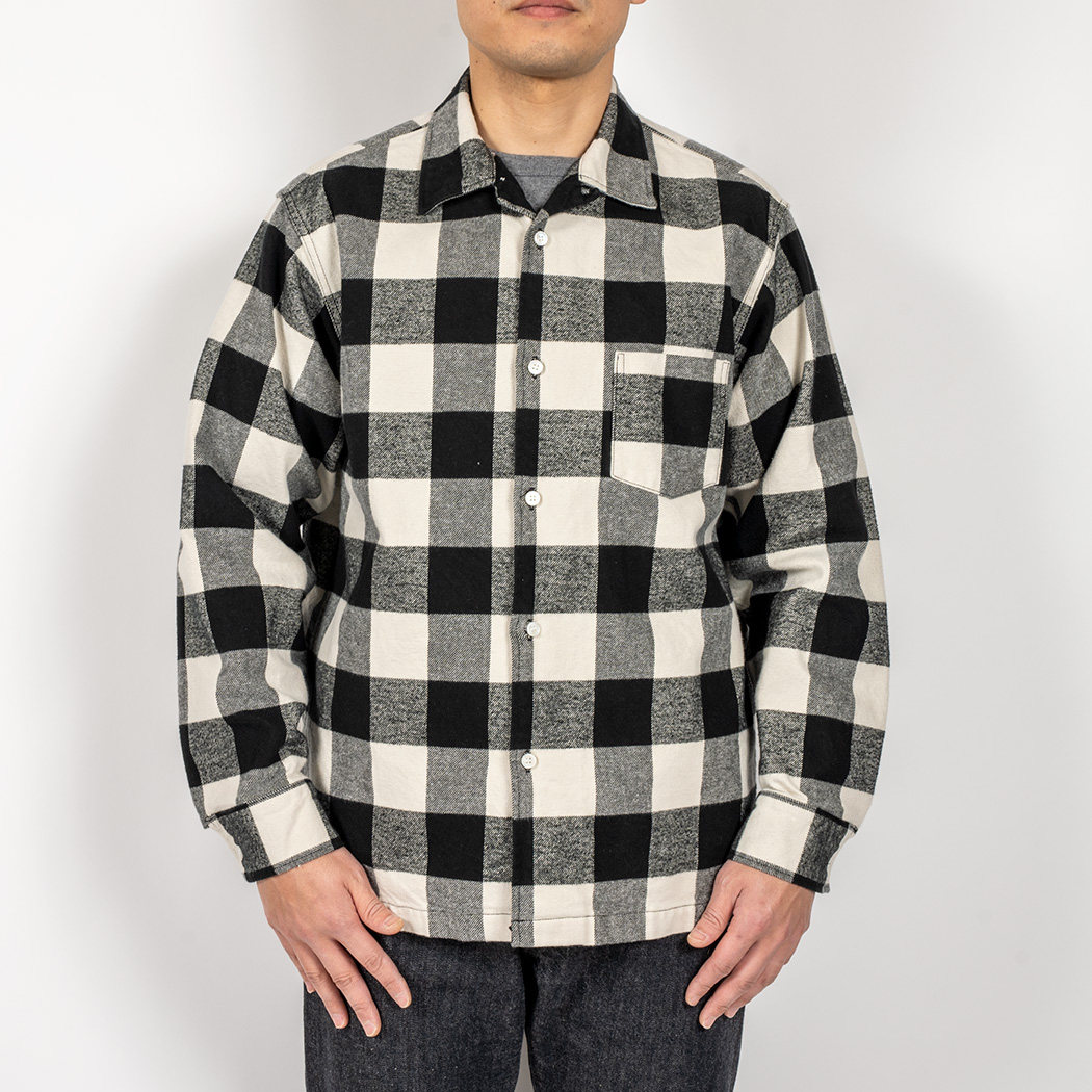 品名 Flannel Open Collar Shirt, White Buffalo Check