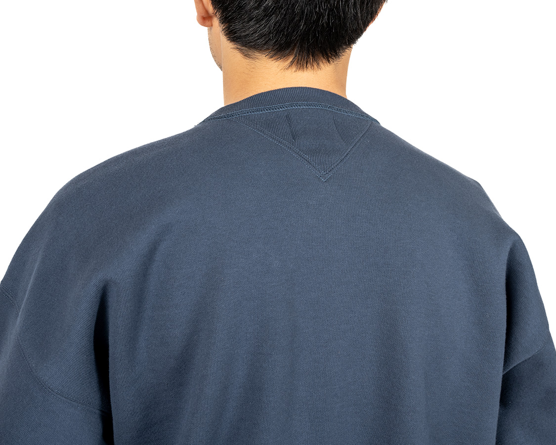 背面側のV。ここもはめ込み式、かつVは生地二重。「縫ってください」と頼んでおきながら思いますが、手間かかる仕様です。頼んでる工場さん、上手いですね、ステッチ見ても。正直、単価はかなりお高めなのですが、生地の作成から最終縫製まで、一貫で相談できる工場さんなのでここが良いのです。