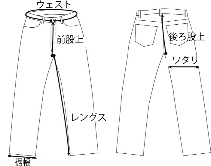 シルエット、定番801より少し太目。通常801がW32で裾幅21センチに対し、801XHはW32サイズで22.5センチほど。股上も1センチ程深い。