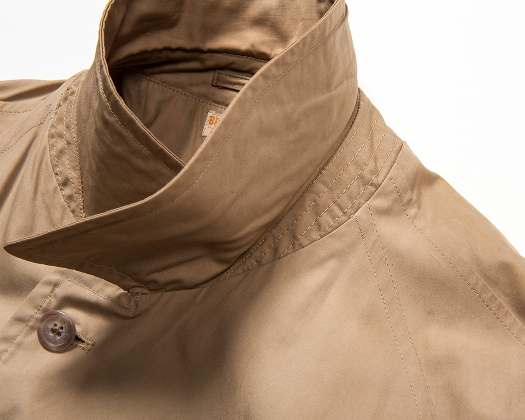 表生地が、ある程度防水性のありそうな生地なので、レインコート的な使い方もできますよ、といった意味でBROOKSWEATHERと名付けたようです。