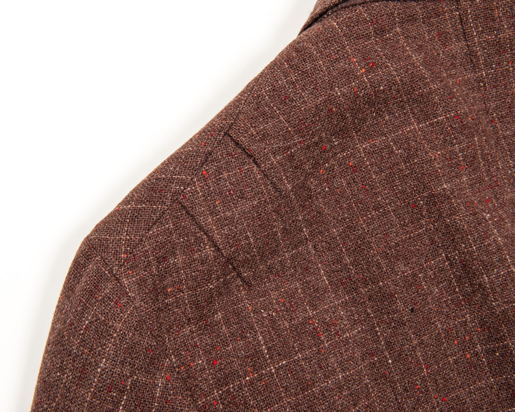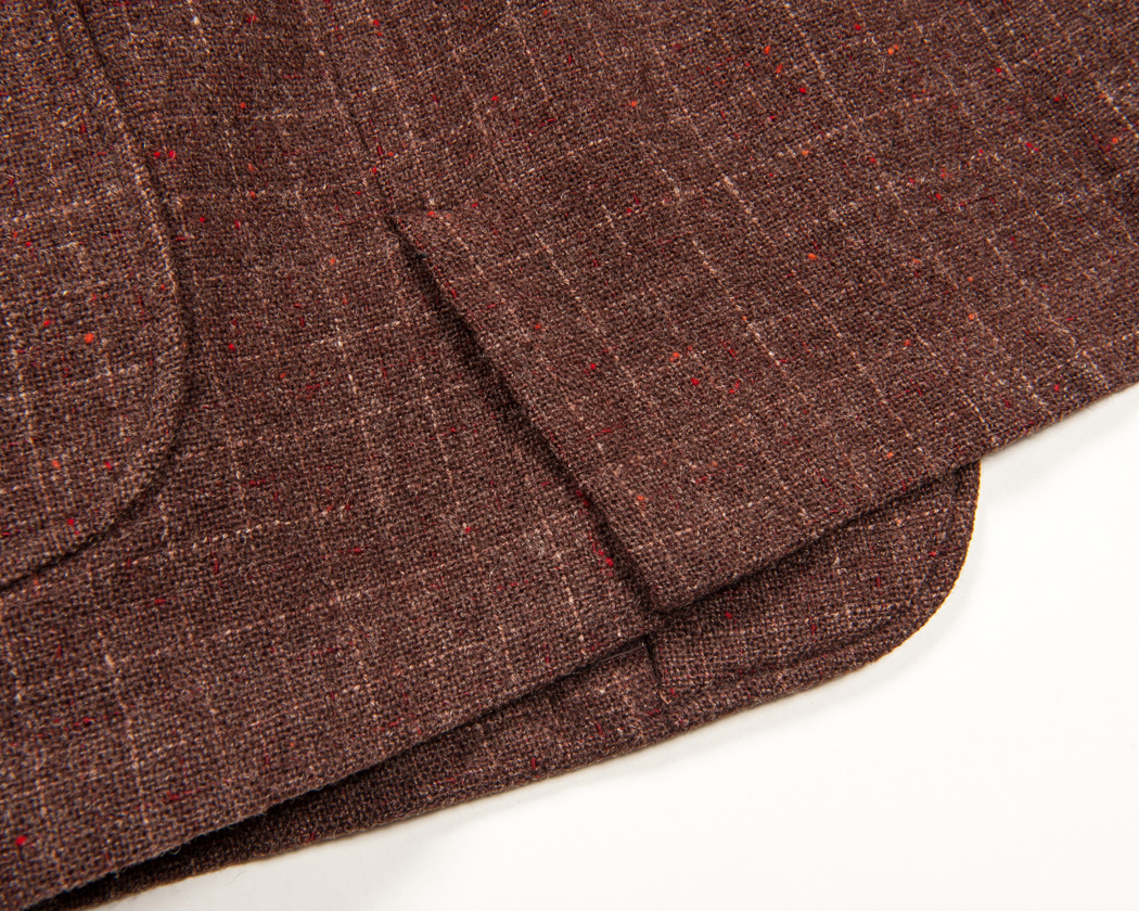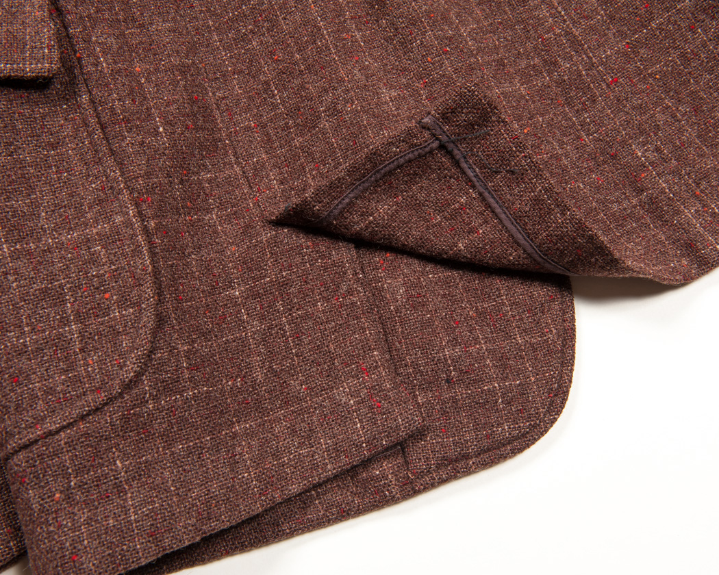 現代のスーツは、こういった丸みを蒸気・熱・アイロンを使って生地を曲げたり、縫製で長さの違うものを縫い合わせたりと、表面上に縫い目が出ないよう工夫されています。それに対し「だったらダーツ入れてしまえばいいではないか」とある意味、潔いのがこのジャケットです。