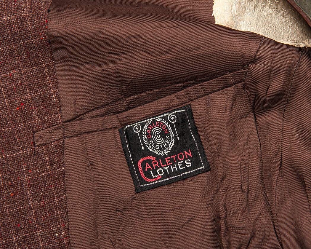 内ポケットは片玉ぶち。Carleton Clothesというネームがついています。
