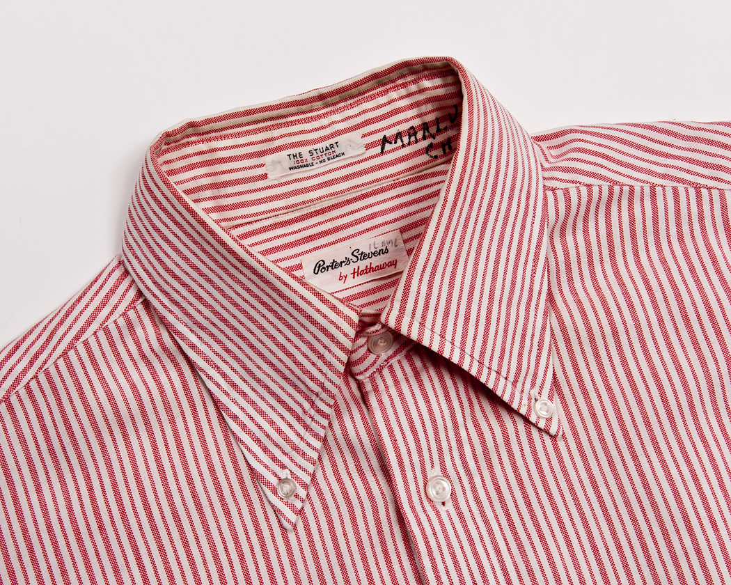 襟先には、ハサウェイのトレードマーク、三つ穴ボタン。おそらく、貝では無く樹脂でできていると思います。