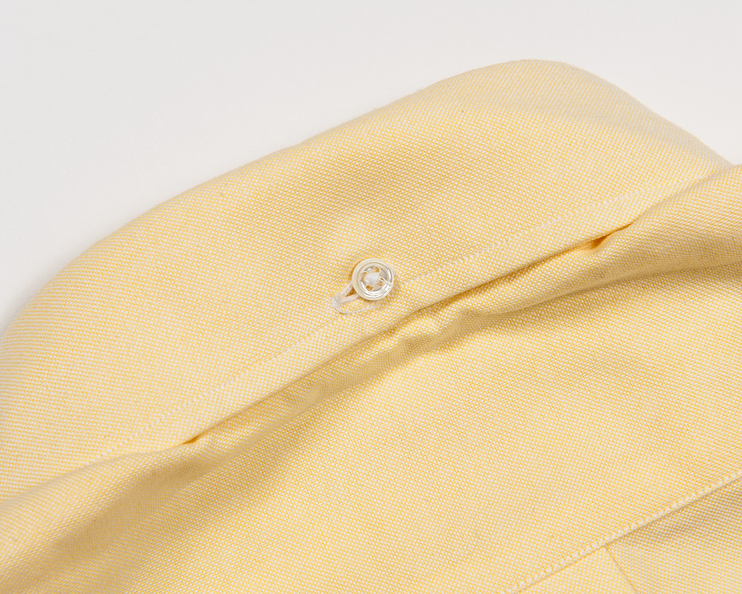 羽襟後ろ中心のボタンどめ。これも、お約束のディテールなようで、70-80年代のいわゆる「アイビー」「トラッド」に関する日本語の本を読むと、「ブルックスは後ろ中心のボタンが無く、Jプレスはある」といったように説明されていたりします。