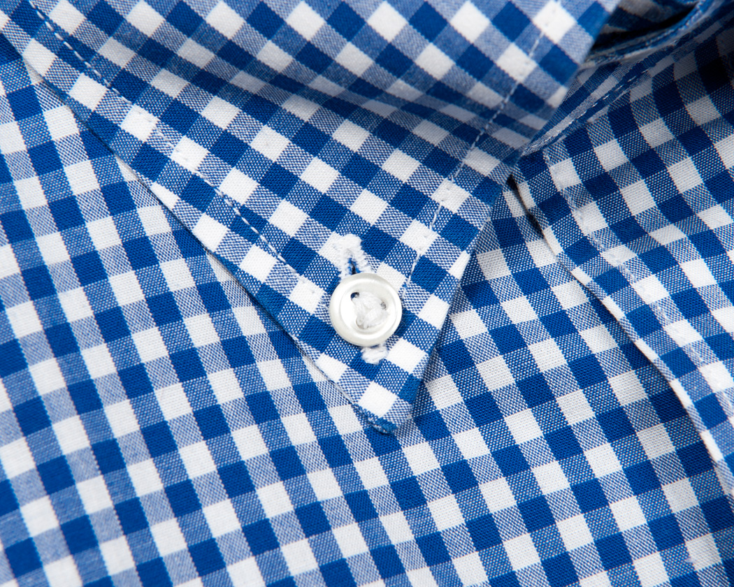 ボタンを閉じた状態で綺麗にロールが出るようにボタン位置が設定されています。台襟のボタンを左右に開くと少しロールがつきすぎに成るのですが、それすらも芯が止めてしまいます。台襟のボタンをあけても、台襟が左右に開いていかないのです。
