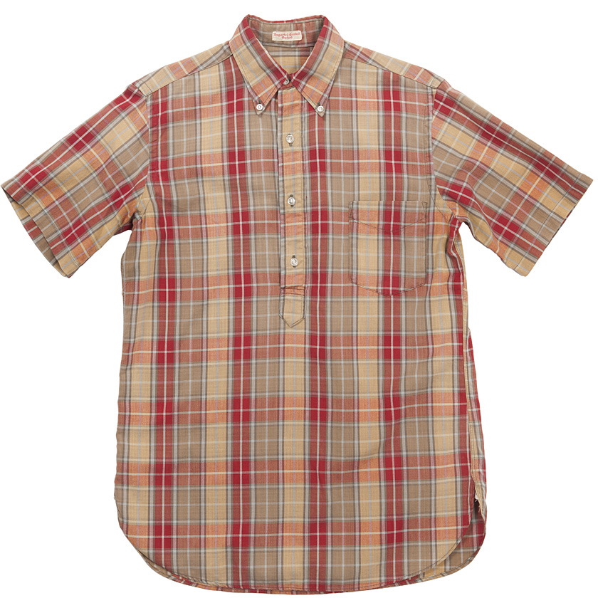 プルオーバーなのに、半そで。ハンガーループ、襟のボタン止め、ボックスプリーツといったいわゆるアイビー・トラッドではお馴染みの仕様も忘れていません。