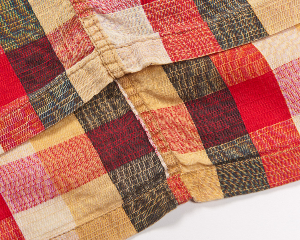 かすかに、ワークウェアというかアメリカらしい量産的な雰囲気を感じる脇の巻き縫い。細めの巻き縫いです。