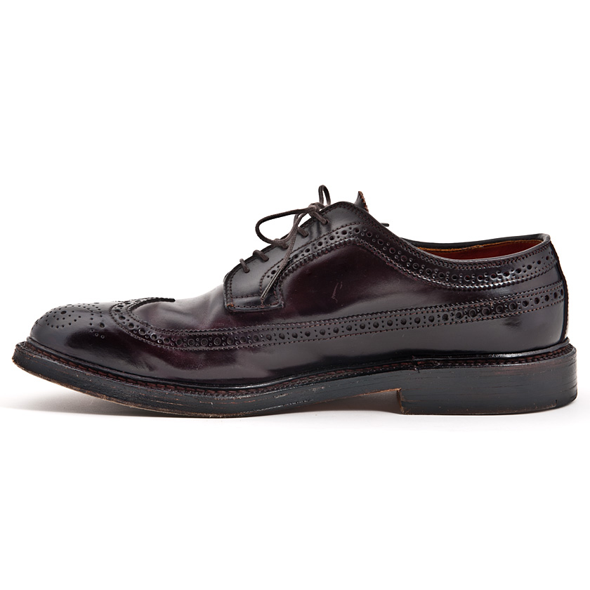 がっちりと張り出したコバ、派手なデザイン、そしてコードバンのツヤと相まってこの手の靴の中では派手な靴です。そのため、冠婚葬祭では避け、一方でアメリカントラッドではお決まりに使われる一足です。