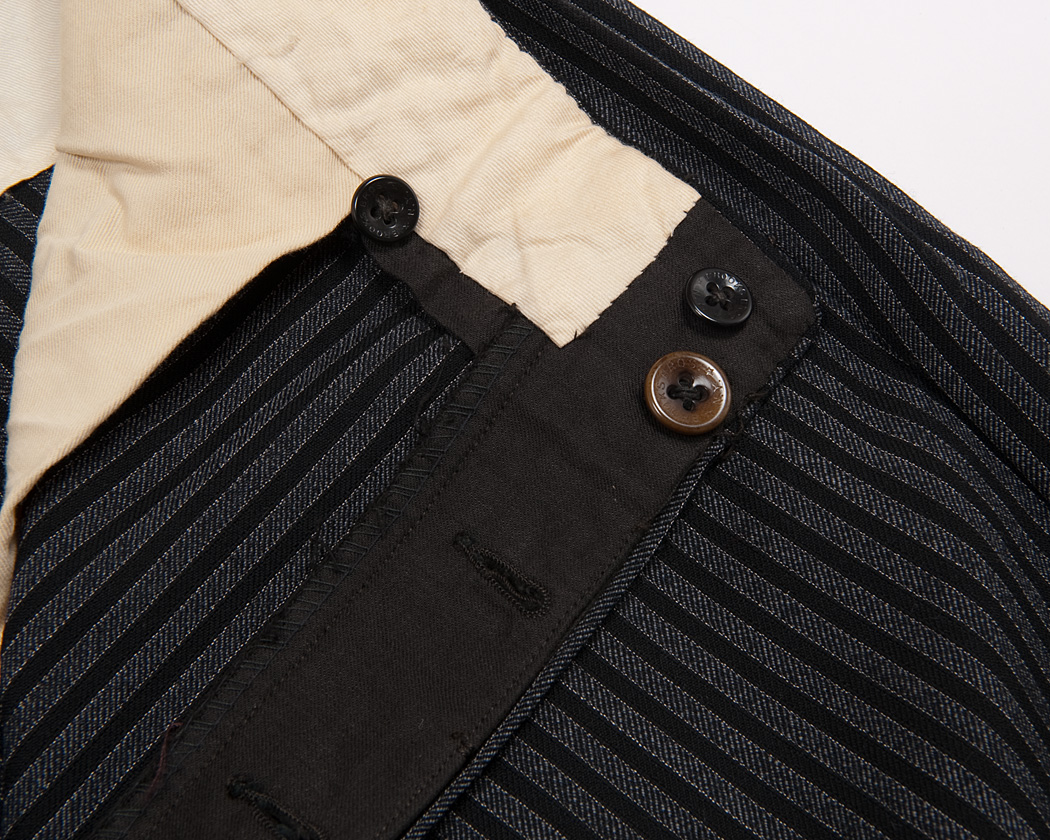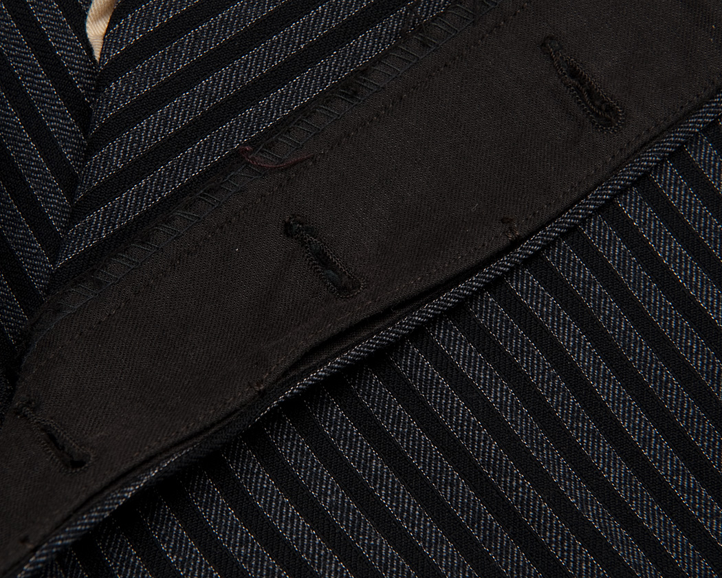 腰裏回りはふんだんな手まつり、ハンドステッチで始末されていますが、ヒヨクの端はロックミシンが使われています。