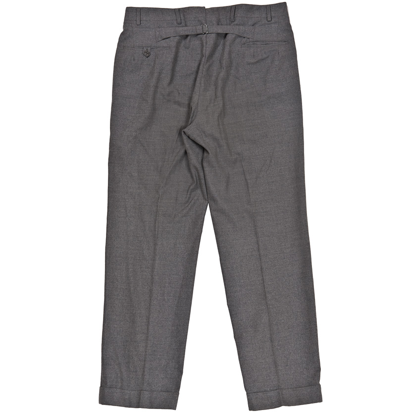 このトラウザー一番の特徴。シンチ付きのバックストラップ。