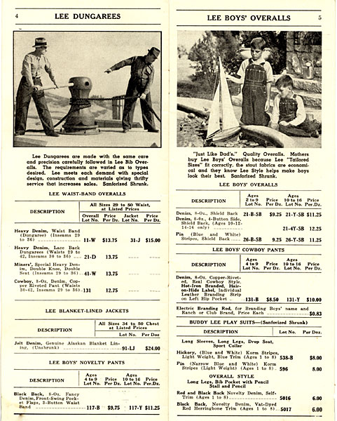 131という品番で、「カウボーイ、8オンスデニム、リベット打ちパンツ」とあります。