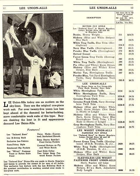 オーバーオールとならぶリーの代名詞、ユニオンオール(ツナギ)の登場です。