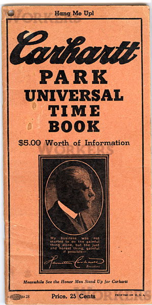 カーハートの1938-39年カレンダー付きのタイムブックです。
