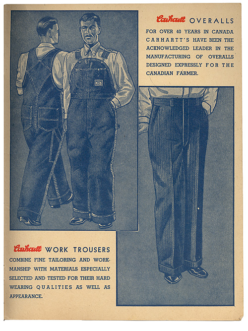 ”40年以上、カナダでカーハートは特にファーマー向けのオーバーオール製造会社のリーダーです”とあります。