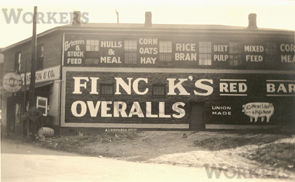 フィンクスオーバーオールで有名なW・Mフィンク社の壁面広告の写真です。