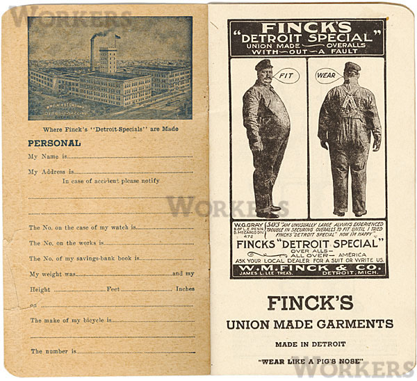 1ページ目には、W.M.フィンク社の工場/このタイムブックを持つ人の名前や住所欄があります。