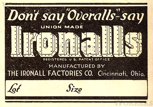 ”オーバーオールとは呼ばないで、アイアンオールと呼んでください”と、自社のブランドを宣伝しています。
