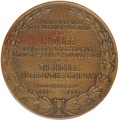 なんとも珍しい、リーの創業者、H.D.Leeに贈られたメダルのレプリカです。