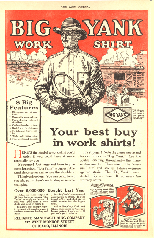 当時は1919年にビッグヤンクの商標を取って間もない頃で、洋服につくラベルのデザインを宣伝したり、ブランドの周知に努めていることがうかがいしれます。