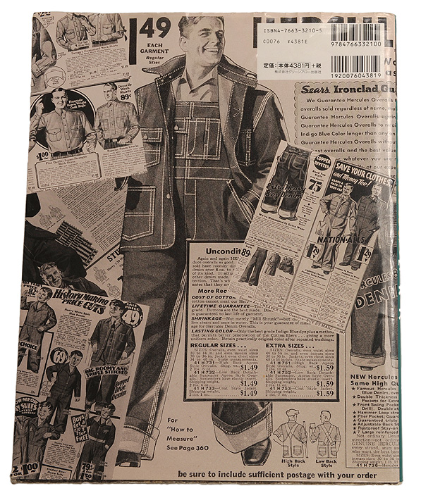 それまでも、おぼろげにカバーオールなどには興味がありましたし、ストアブランドには古いカタログがあるという事は知っていました。 しかし、当時はまだネットも今ほど普及しておらず、そういった実物カタログを手にする機会にはなかなか恵まれませんでした。 そんな中で出会ったこの一冊。1900年代初頭のシアーズ・モンゴメリーワードに始まり、メジャー/マイナー問わず様々なメーカーのワークウェアに関するページのみが次々と登場します。 前半を占める白黒のワークウェアを着た人々の写真、これも実物の持つ雰囲気が良くわかり、解像度も高い写真ばかりですので服自体のディテール、当時の髪型やコーディネートまでも詳しく観察ができます。 写真自体、白・黒のコントラストが美しく見たものに強い感動を与てくれるものばかりです。 惜しむらくは、出典が場所・年号のみで、どのコレクションから、誰が撮影したものなのかが明記されていない事です。 ワークウェアに興味があれば、必ず持つべき一冊です。