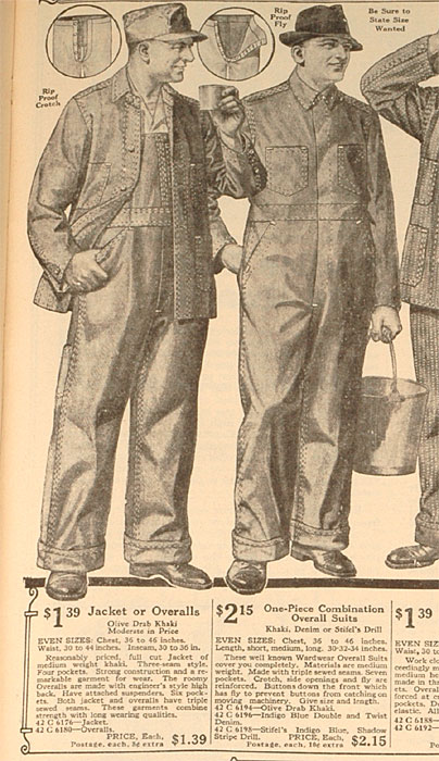 右:2ドル15セント、ワンピースコンビネーションオーバーオールスーツ。Leeのユニオンオールのようなツナギです。