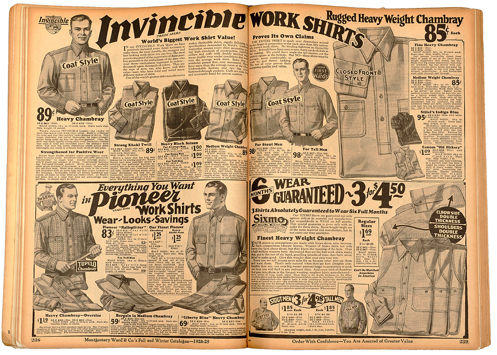 モンゴメリーワード・1928-29秋冬カタログから、ワークシャツのページです。