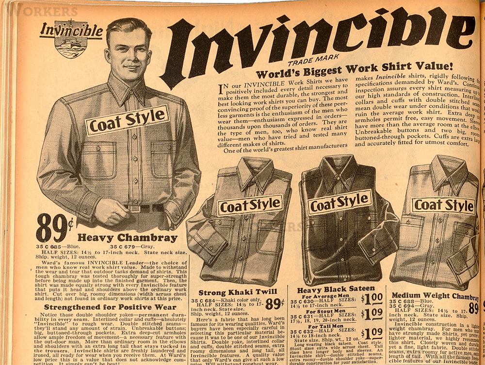 89セントで、ヘビーシャンブレー(ブルーとグレイ)、ストロングカーキツイル(いわゆるチノ)、ミディアムウェイトシャンブレー(ブルーとグレイ)が紹介されています。