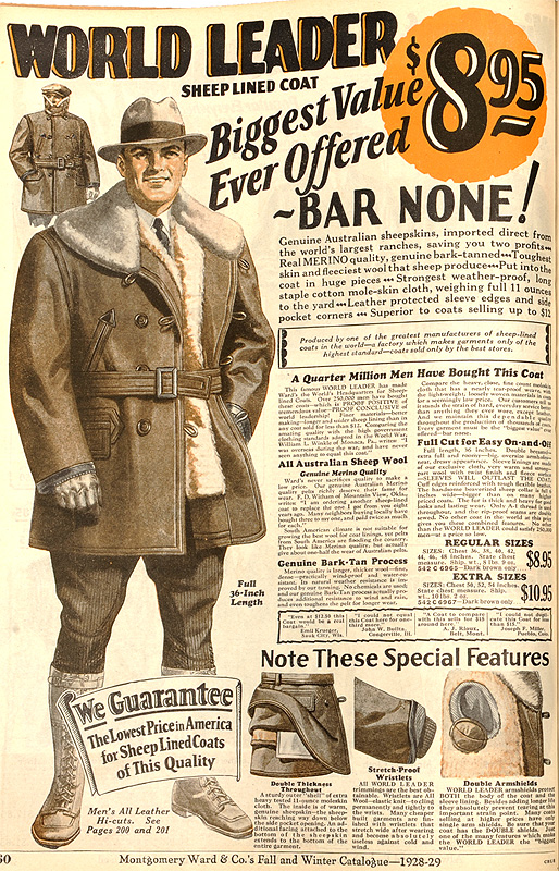 以前紹介したシャツが1ドル程度でしたから、約9-10倍。今で考えると、シャツが1万円程度、コートは10万円と、同じような価格差です。