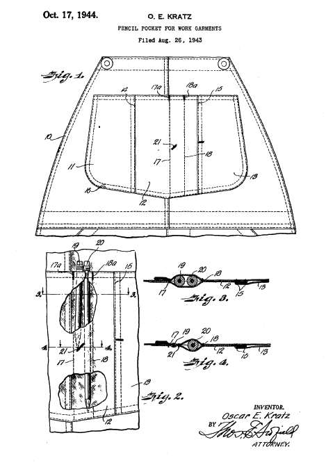 1943年に出願された、ペンシルポケットの特許。