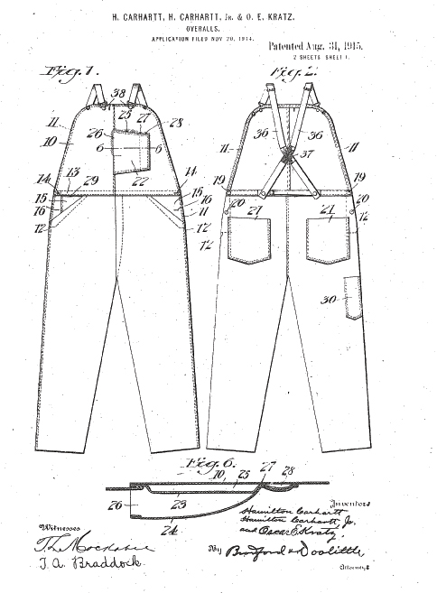 このように、第一次大戦ごろ、カーハート社の創業者、ハミルトンカーハートと連名で特許出願をしたり、また譲渡人に同社がなっています。