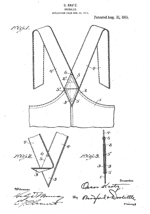 1915年、オーバーオールの背当て布に関する発明。