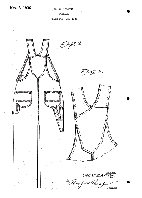 1936年、オーバーオールのデザインに関する特許。