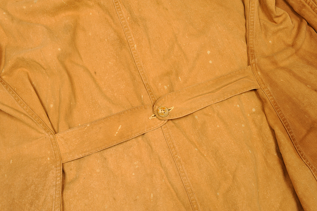 古いコートなどで見られるこの手のベルトは、徐々に縫いつけられる物が多くなるようですが、コート、スポーツジャケット、さらにはテーラードジャケットにまで数多くその後もなごりを見つけることができます。