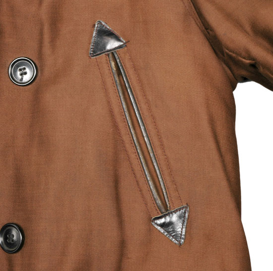 胸ポケットは、玉ぶちに革が使われ、左右も革で補強がつけられています。